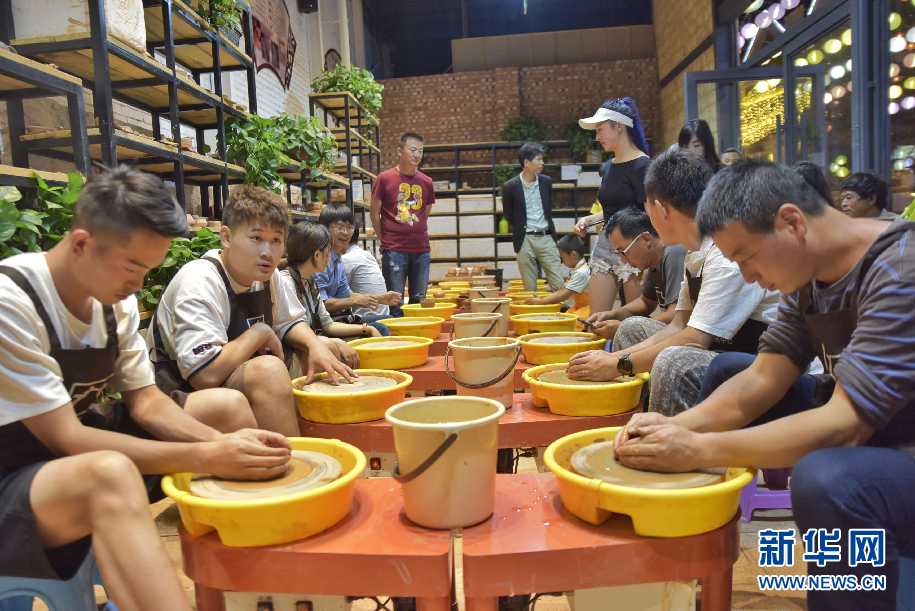 游客在建水紫陶营销中心体验紫陶拉胚过程孟志刚摄
