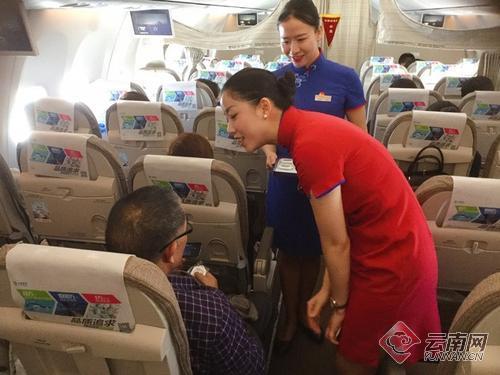 马维波听后,轻轻俯身下蹲,接过老奶奶手中的《云南日报》,一字一句地轻声念着,不时还问问老奶奶听懂没有,温暖的场景让整个航班显得无比和谐有爱。