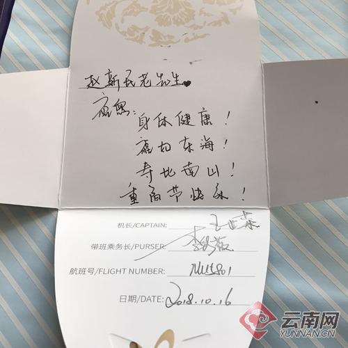 “爱满重阳节、锦绣暖人心”,浓浓的“尊老、敬老、爱老、助老”之意深植每一位旅客的心中 ,航班在温馨祥和的氛围中平稳落地。