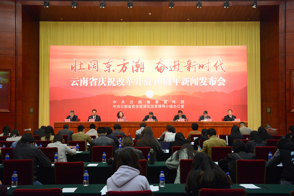 11月26日,省政府新闻办在昆明举行“壮阔东方潮 奋进新时代”云南省庆祝改革开放40周年系列新闻发布会民主法制主题专场,省委统战部有关负责人出席新闻发布会,介绍了改革开放40年来云南爱国统一战线不断发展壮大的历程。