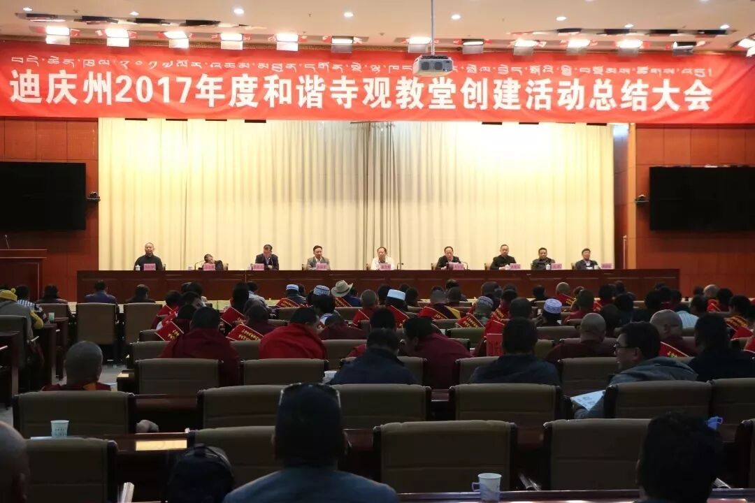 2018年,迪庆州委统战部大张旗鼓对全州2017年度和谐寺观教堂创建活动中涌现出来的12座先进寺院和教堂进行了命名,对63名先进教职人员进行了表扬……
