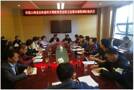 11月9日,台盟云南省委到普洱市开展脱贫攻坚民主监督及课题调研工作座谈会。全国政协委员、台盟云南省委主委杨晓红,市委常委、统战部部长李鸿出席会议。