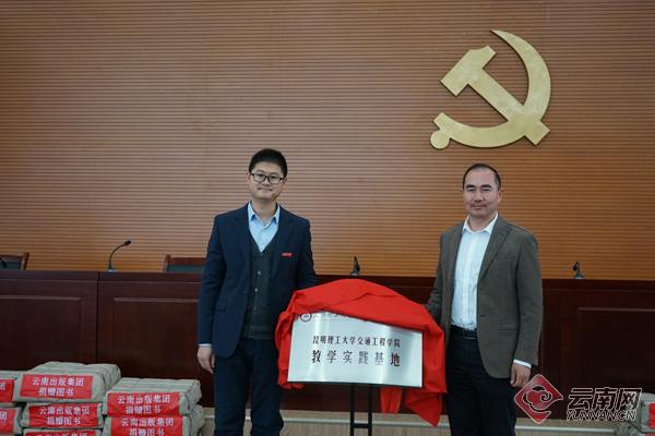 随后,双方领导共同为“昆明理工大学 云南出版集团大学生创新创业教育实践基地”“大学阅读体验店”“昆明理工大学 云南出版集团出版中心”“党建文化阅览室”、“昆明理工大学交通工程学院教学实践基地”“云南出版集团物流有限责任公司人才培养基地”揭牌。