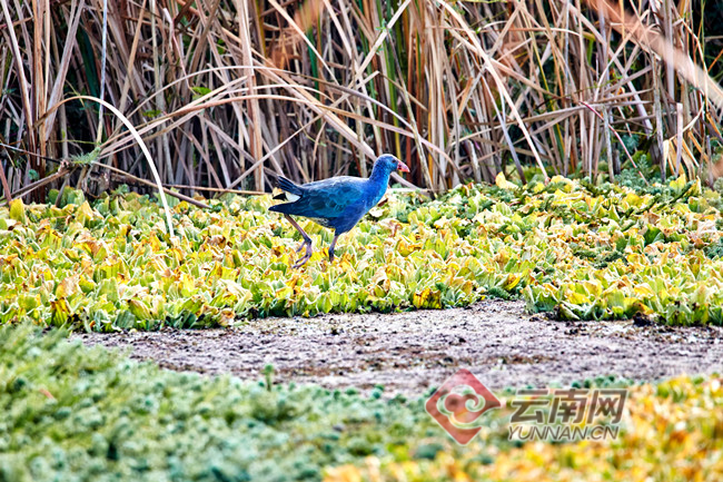 12月8日上午,云南野鸟会会员李继明和鸟友王剑在昆明市晋宁东大河湿地开展迁徏鸟类调查中,意外发现一只紫水鸡在该湿地活动。