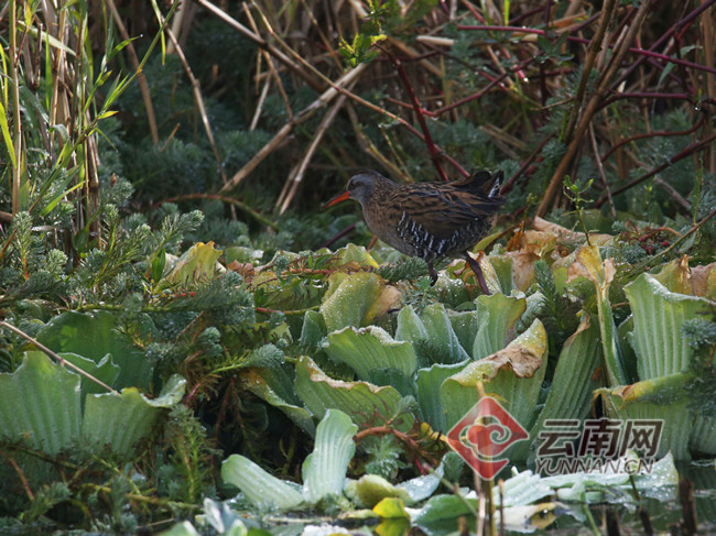 普通秧鸡(学名:Rallus aquaticus)虽然名中带有“普通”二字,但也是珍稀鸟类。它是鹤形目秧鸡科秧鸡属的鸟类,共有4个亚种。中型涉禽,全长29厘米,额羽毛较硬;嘴长直而侧扁稍弯曲;鼻孔呈缝状,位于鼻沟内。栖息于开阔平原、低山丘陵和山脚平原地带的沼泽、水塘、河流、湖泊等水域岸边及其附近灌丛、草地、沼泽地带、林缘和及水稻田中,也可生活在农田的排水沟、小块湿地。性甚隐秘。常单独或成小群于夜间或晨昏活动,白天多匿藏在茂密的草丛或灌丛下,仅在晨昏和夜间觅食时才到开阔、空旷的地方来。普通秧鸡性畏人,常单独行动,见人迅速逃匿。2012年濒危物种红色名录ver3.1--低危(LC)。
