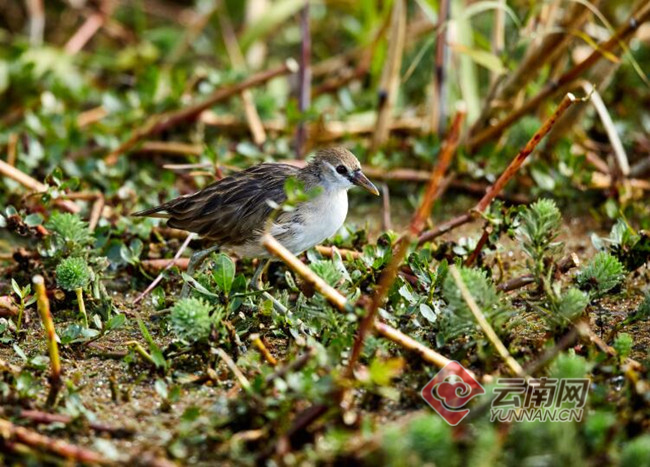 在本次调查中,野鸟会员们还记录到十分珍稀的白眉田鸡及普通秧鸡。白眉田鸡又名白眉秧鸡,属鸟纲鹤形目秧鸡科鸟类。白眉田鸡体长约20厘米,属于小型涉禽,栖息于沼泽、草地、水稻田、水塘等湿地,常在早晨和傍晚活动,白天多躲藏于水草丛中,以水生昆虫和水生植物种子为食。据了解,白眉田鸡主要分布在东南亚至澳大利亚北部等地区,我国则比较罕见,近年在广西、四川、云南偶有发现。列入《世界自然保护联盟》(IUCN)2012年濒危物种红色名录ver3.1--低危(LC)。