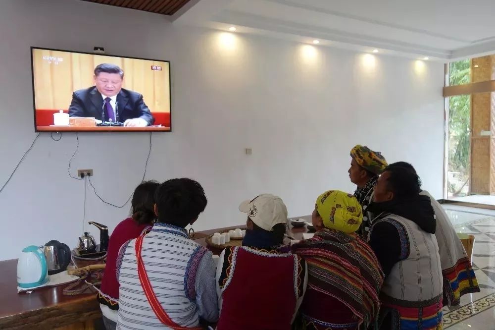 “老县长”家火塘通红,格外温暖。10时整,大会直播开始,高德荣一边观看一边在笔记本上记录要点,并不时给身旁不太懂汉语的独龙族群众解读。