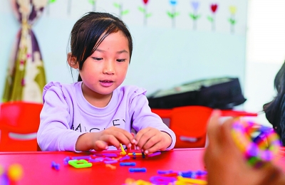 云南省怒江傈僳族自治州泸水市大兴地镇中心幼儿园,接受免费学前教育的傈僳族女孩在上手工课。新华社发