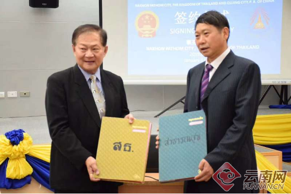 云南网讯(记者 伍平)1月17日,记者从云南省人民政府外事办公室获悉,1月10日至14日,在曲靖市政府代表团访问泰王国佛统市期间,双方于1月11日在佛统市政厅举行了《中华人民共和国曲靖市和泰王国佛统市缔结友好城市关系协议书》签字仪式,两市正式缔结为国际友好城市关系。