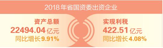 省国资委的数据显示:2018年,省国资委出资企业(含国有独资、控股、参股)主要经营指标稳步增长:资产总额22494.04亿元,同比增长9.91%;净资产6397.78亿元,同比增长17.72%。实现收入7256.37亿元,同比增长3.15%;实现利税422.51亿元,同比增长4.08%。截至2018年12月末,平均资产负债率(不含金融)为69.03%,同比下降1.81个百分点。