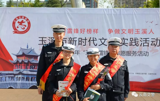 3月5日,玉溪市新时代文明实践活动暨“3.5学雷锋”志愿服务活动在玉溪东风广场举行,40余家市、区级单位和社会公益组同步开展志愿服务活动。玉溪市公安局交警支队组织民警、辅警组成志愿者宣传服务队开展文明交通及扫黑除恶宣传。