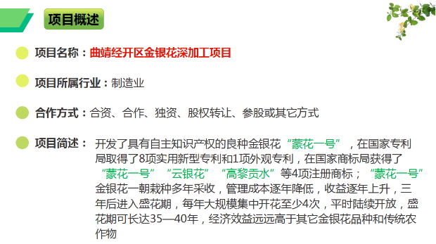 【招商引资第4期】曲靖经开区金银花深加工项目