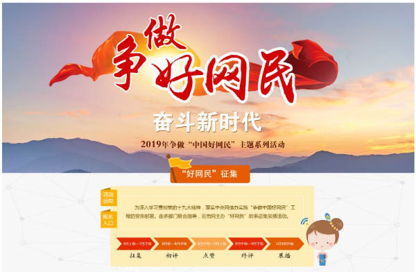 4月18日上午,由多部门联合指导,云南网主办的 2019年“争做中国好网民”主题系列活动正式启动。即日起,进入云南网“争做好网民 奋斗新时代”专题即可参与各项活动。