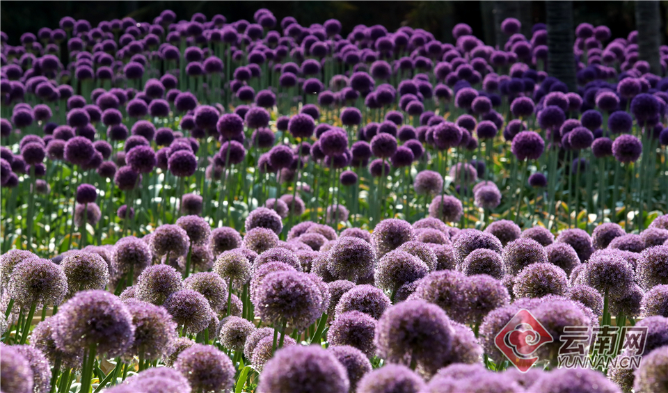 “大使”“紫红巨人”“紫色动感”等名品花葱盛开形成壮观的紫色花海景观