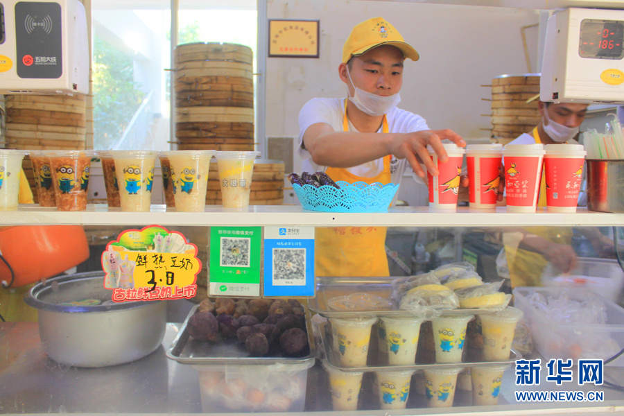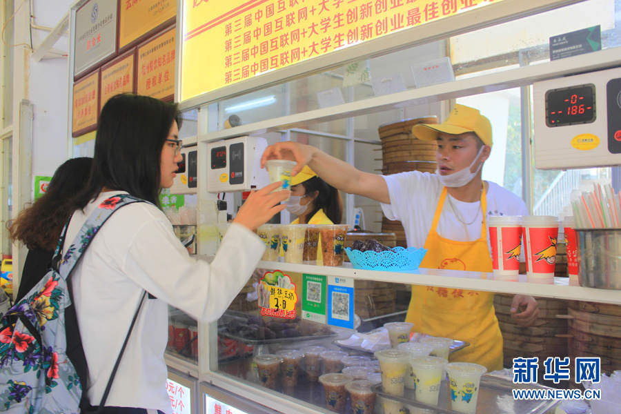 相信很多云南人都知道甚至尝过“罗小馒红糖馒头”,这个蒸好后会自然“开花”的养生红糖馒头受到很多消费者的喜欢。然而,很多人不知道,它的创始人竟是一位才毕业不到一年的90后小伙——罗三长。图为罗三长整理售卖台。(新华网 石光良 文/摄)