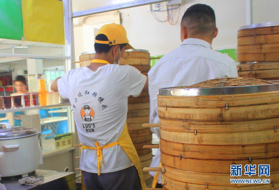 罗三长出生于江西赣州。2008年,父亲的去世,让他不得不担起家庭重担,但是学业不能荒废。于是,在高中时期,他就走上了边学习边创业的艰苦之路。最初他成立了一家劳务派遣公司,利用假期带队外出东莞打工,在几次挫折后,积累了社会经验及创业经验;还在新东方学习过烹饪,拿到了新东方二级厨师证,这为之后创立“罗小馒红糖馒头”品牌打下了坚实的基础。图为罗三长在售卖红糖馒头。(新华网 石光良 文/摄)