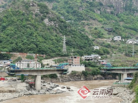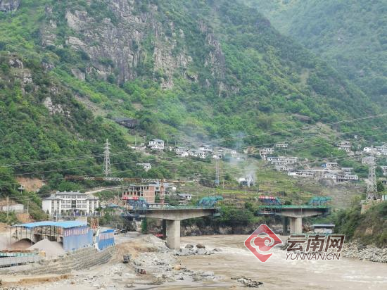 而在两公里外,一座更大的新“碧福桥”正在建设。随着2017年怒江美丽公路改扩建,这座位于原桥以北的卓旺河与怒江交汇处的新碧福大桥也被纳入考虑。新大桥为预应力砼变截面连续梁,桥面全宽12米,全长312米。在新大桥旁,黄墙红顶的阿甲瓦底村正生机勃勃。
