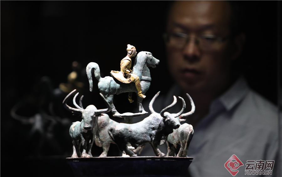 西汉“四牛鎏金骑士铜贮贝器”吸引观众目光。