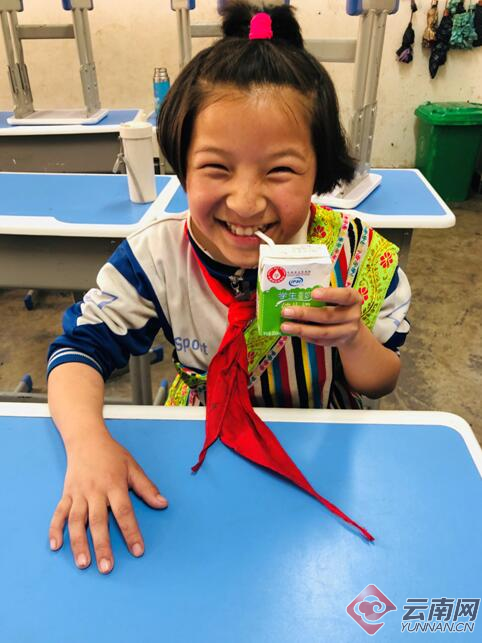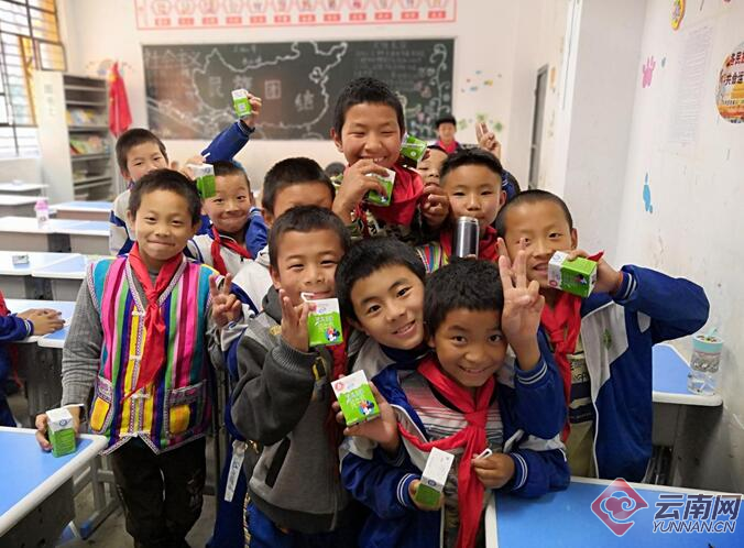 九年一贯制学校的孩子们饮用伊利学生奶。通讯员 李雄 摄