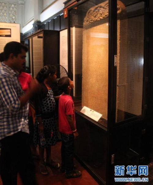 5月13日,郑和《布施锡兰山佛寺碑》(复制品)在“大美亚细亚——亚洲文明展”上展出,它见证了海上丝绸之路以及云南与斯里兰卡友好交往的历史。