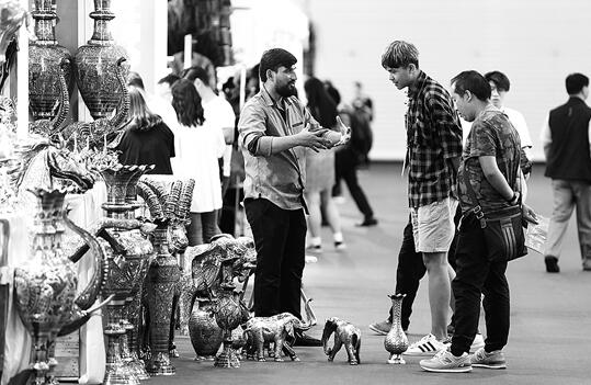 该馆主要展示珠宝、地毯、香料、茶叶、纺织品、手工艺品等特色产品,印度的服饰、斯里兰卡的宝石、尼泊尔的唐卡……都是往年最受逛展市民欢迎的商品。此外,馆内还有许多木质家具、镀铜工艺品、地毯等“大件”商品,也都充满了浓郁的当地特色,吸引了不少人的目光。在阿富汗展区,纯手工的羊毛地毯每一块的颜色和图案都独一无二,每平方米价格高达2000元。“虽然价格不便宜,但是我们每年卖得都还不错。”参展商Mohd Ibrahim Qassimy说。