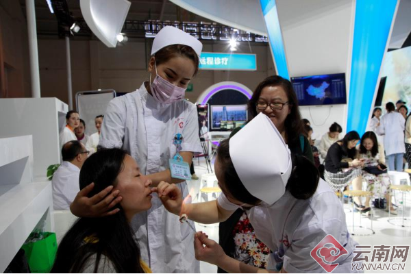 中国传统武术及中医药功法展示、老中医现场开处方、塑颜美肤操现场教学……连日来,在商洽会生物医药大健康馆内的云南省中医医院展区,展示着医院特色科室、知名专家、院内制剂等,让医院独特的中医药文化走出云南,走向南亚东南亚地区,擦亮云南“健康生活目的地”名片。