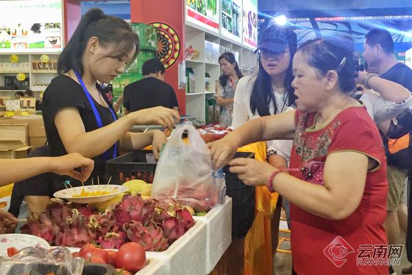 “我们的芒果、小番茄卖得非常好,已经补货3次了!” 元谋鸿荣农业科技有限责任公司展台的负责人告诉记者。展台前,市民刘女士正在选购三年芒,“尝了一下这个芒果味道很浓,纤维少、果核小,价格也不贵,买些回去给家人吃。”