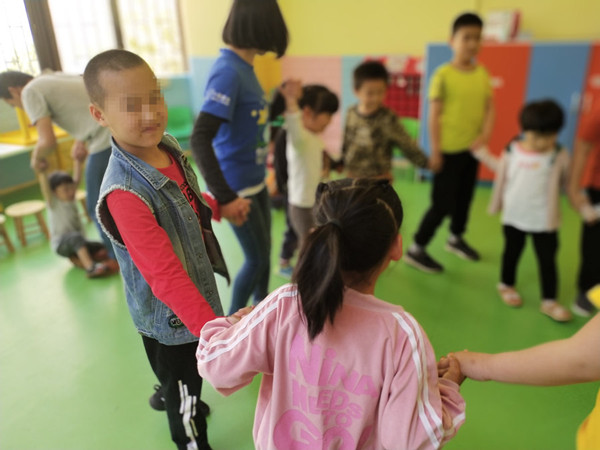 感受被关怀的“统战温度”特殊孩子和普通幼儿园的小朋友一起玩耍,接受融合教育。