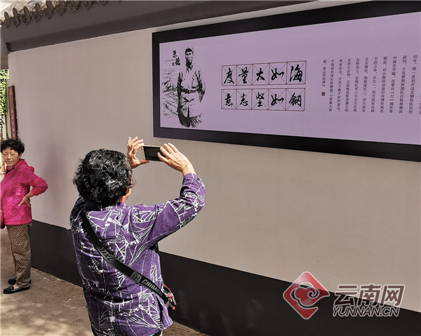 最近,细心的市民发现,翠湖边红花巷廉洁文化长廊又变了样。巷头塑有朱德同志半身浮雕,配以“云南是我第二故乡”的朱德语录作为路引,一直通往巷子深处的“朱德旧居”。全长约220米的长廊上,集中展示的7个主题,让朱德同志“坚守正道、光明磊落、克己奉公、清正廉洁”的伟大革命家形象更加立体生动、感召人心。现场,不少市民驻足观看,拍照留念。
