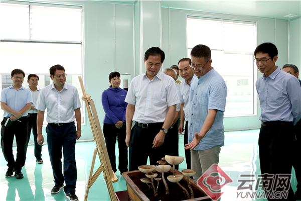 在红河县食用菌产业链精准扶贫项目点,陈豪听取了中科院昆明植物所许建初团队的情况介绍,指出要以科技创新支撑当地生态农业和绿色经济发展,将现代农业文化与旅游文化、知识科普有机融合,走出生态扶贫和科技兴农新路子,在红河谷大地彩绘出一幅生态画卷。