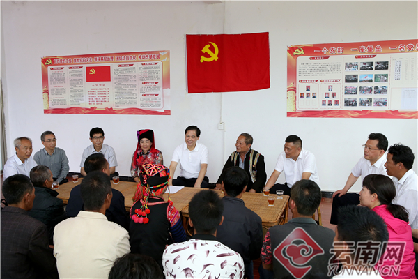 7月21日,陈豪一行来到绿春县平河镇大头村拉祜寨村民小组,调研边疆党建、脱贫攻坚、基层治理、民族团结、禁毒等情况,并与基层干部群众座谈,听取意见建议。记者 雷桐苏 摄