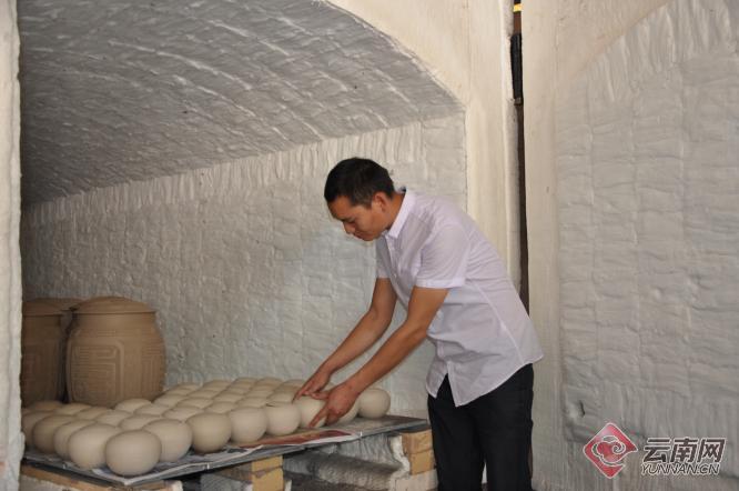 七月的华宁进入炎夏。在华宁县宁州沁心陶艺工坊的生产车间里,开炉时刻的余温烘得人脸上热辣辣的。戴云明显然已习惯了这样的高温,冒着余热仔细查看新出炉的陶器。