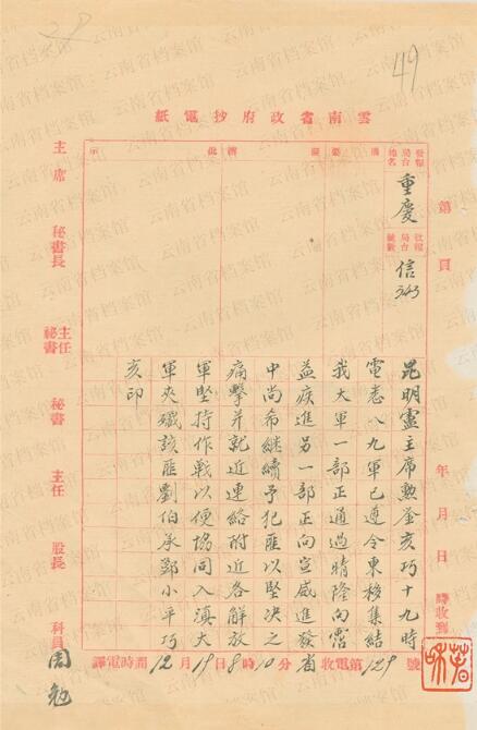 原标题:云南省档案局(馆)授权发布 解放云南档案(三)云南解放:翻开历史新篇章