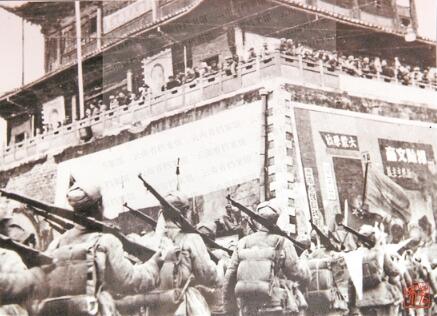 1950年2月20日人民解放军二野四兵团、西南服务团云南支队进驻昆明,沿途受到各族群众的热烈欢迎。