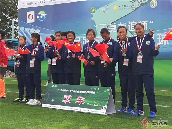 云南网讯(记者 娄莹)10月18日,“三菱友谊杯”第五届残疾人民间足球争霸赛总决赛在北京落下帷幕,云南聋人女足以1平2胜1负的成绩,获得该组别第三名。