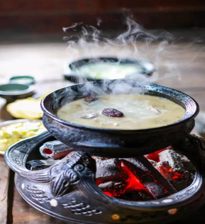 尼西黑陶的制作原料来源于汤堆片区山上的几种特殊泥料,这是自然的恩赐,在村民的心里,周围的山都是神山。从挖土到成品,1个黑陶器具要经过近10个步骤才能“浴火而生”。