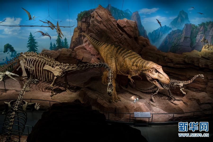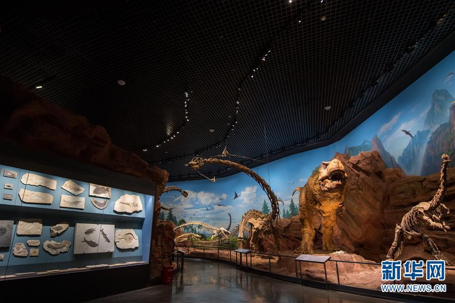 这是澄江化石地自然博物馆内展示的恐龙化石与模型(12月26日摄)。新华社记者 胡超 摄