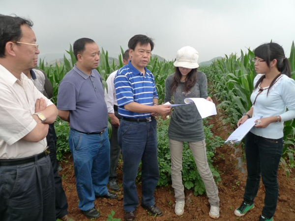 朱有勇和团队在田间地头查看作物病虫害情况。资料图