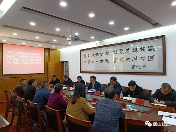 为深入学习领会习近平总书记关于加强和改进统一战线工作的重要思想,1月14日,保山市召开市级统战系统成员单位处级以上中共党员领导干部学习贯彻习近平总书记关于加强和改进统一战线工作的重要思想会议。