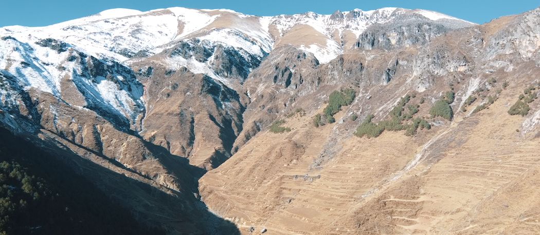 随着车辆不断往上攀爬,重山之间竟微微露出了雪山一角。那就是曾被《国家人文地理杂志》推荐为108个绝美地标之一的大海草山,她素裹银装,在万顷碧空下缓缓出现,牵引着外来者的心弦,却也映照着山间千百年的贫困。