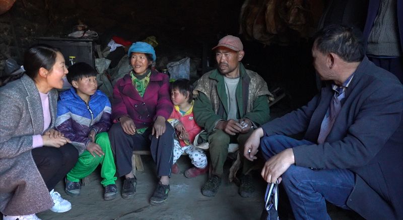 乡干部正在向杨正学一家四口了解搬迁准备情况