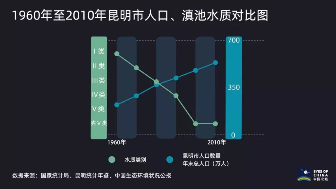2010年至2018年间,昆明市人口增长35.36万人,滇池水质从劣V类回归Ⅳ类。