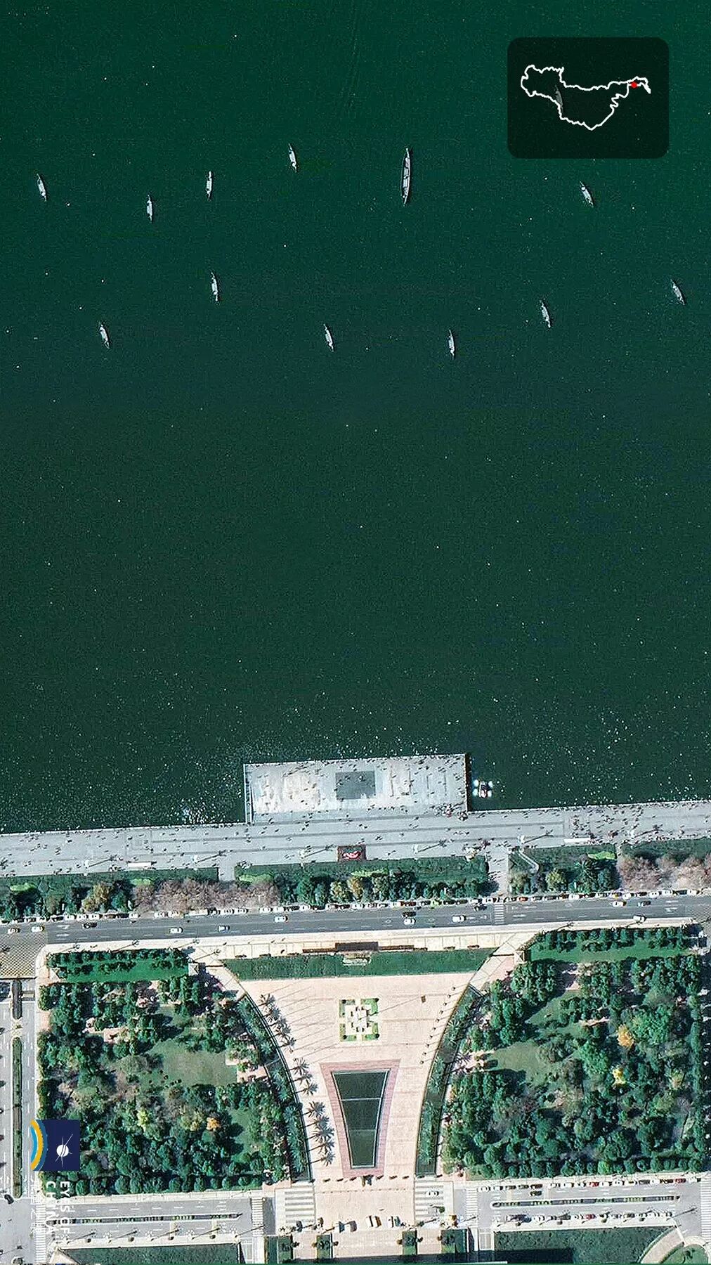 从卫星俯瞰滇池东岸,来自西伯利亚的红嘴鸥像在碧绿湖面撒下片片飞花。