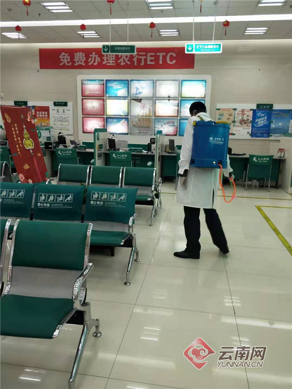 为进一步做好营业网点疫情防控,农行云南省分行统筹协调、因地制宜,妥善做好网点营业安排,保障节日期间金融服务平稳有序。每天对营业场所、自助机具及相关设备进行清洁消毒,有效降低客户受到交叉感染的风险。在各营业网点配备必要口罩、消毒液、测温仪等防护设备和防疫用品,对一线员工开展防护培训,全力做好疫情防控工作。