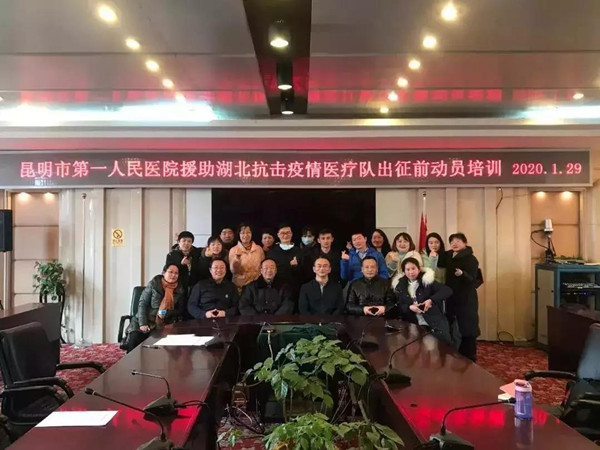 九三学社社员、昆明市第一人民医院李超副院长代表援助湖北抗击疫情医疗队在昆明市第一人民医院援助湖北抗击疫情动员培训会上表态:“一定不辜负省委、市委和上级党委及医院党政班子、全院职工深切希望和殷切嘱托,做好充分的准备,有召即出,斗志昂扬地出发,平平安安地回来。”