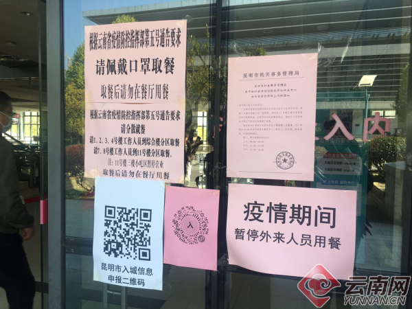单位食堂。针对复工机关、企事业单位食堂,检查组要求食堂开办方做好餐饮具消毒,落实进货查验,索证索票制度,实施错峰开餐,倡导盒餐外带、采取分餐制,避免集中用餐。检查组分两个小组到昆明市市级行政中心食堂开展检查,行政中心各食堂门口已粘贴疫情防控公告,实行分餐制供餐,餐食分发至各个职工,分散食用。为确保疫情期间返岗复工后,单位食堂餐饮服务食品安全,在主城五区开展医院、养老机构等民生关注单位食堂开展监督抽检工作。