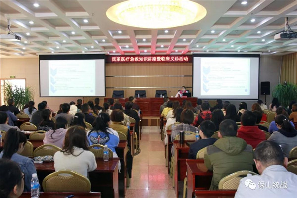 主动邀请和组织有关专家学者到基层开展医疗服务活动,以实际行动助力基层群众提升医疗健康水平,并得到了基层群众的一致好评。如:民革保山市总支邀请首都医科大学附属北京世纪坛医院专家,举办“同心·博爱”健康大讲堂以及医疗急救知识讲座,160余人到场聆听。民建保山市委先后开展了“关爱眼睛保护视力校园行”公益活动、“口腔健康,全身健康”,为184名建档立卡贫困学生发放了优质合格近视眼镜,给隆阳区幼儿园、叮叮当幼托所的教师进行口腔健康知识讲座。九三学社保山市委组织医疗专家到腾冲、龙陵部分乡镇开展基层医务人员培训和“全民健康生活方式”宣传活动,培训基层医务人员120多人次,发放《医师在线》等宣传资料1000余份,接受咨询、义诊88人次。