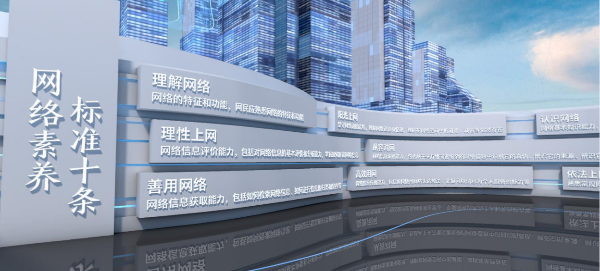 展厅展示了网络素养标准评价体系——网络素养标准十条,引导网民提高网络伦理、自律意识的能力,形成崇德向善的网络行为规范,筑牢网络空间行为规范底线,共同打造天朗气清的网络精神家园。