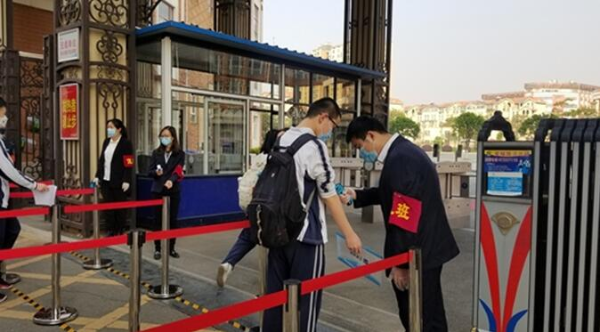 云南省初三和高三年级今天开学了。22日,昆明多所中学的毕业班学生到校报到,同学们陆续回到了阔别已久的校园。值得一提的是,与往年不同,今年各校师生都佩戴口罩入校。