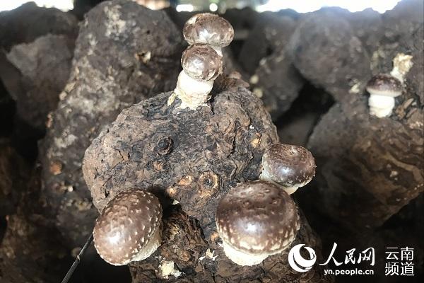 景东县锦屏镇前所村的香菇种植基地里的香菇。人民网 薛丹 摄
